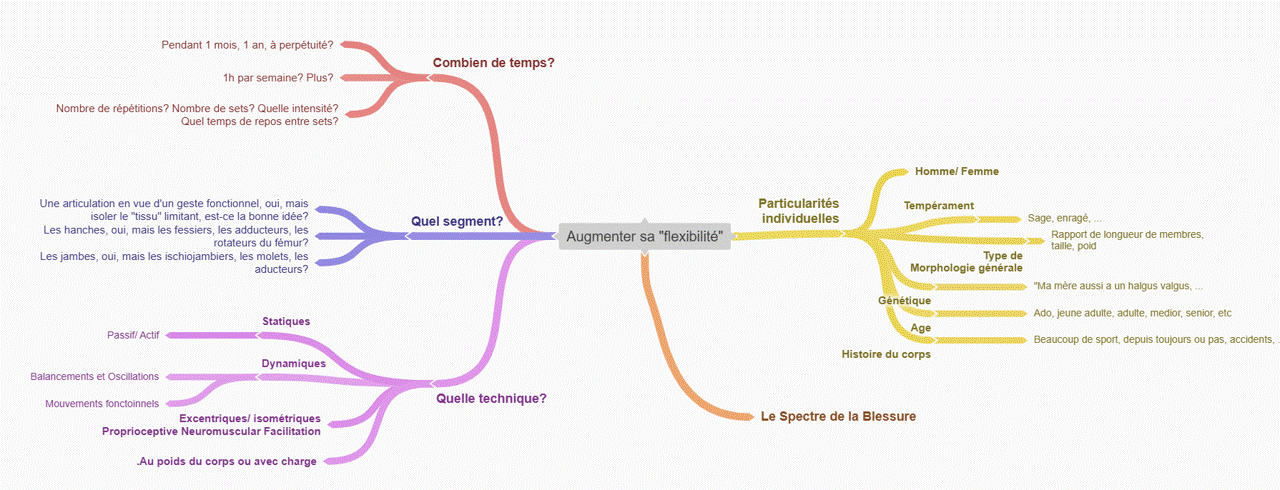 Parmi les schémas d’explication des ressors de la flexibilité, qui permettraient de guider quelles techniques sont efficaces et comment, la théorie la plus … est que l’augmentation de la flexibilité passe par une éductaion du système neuro moteur.